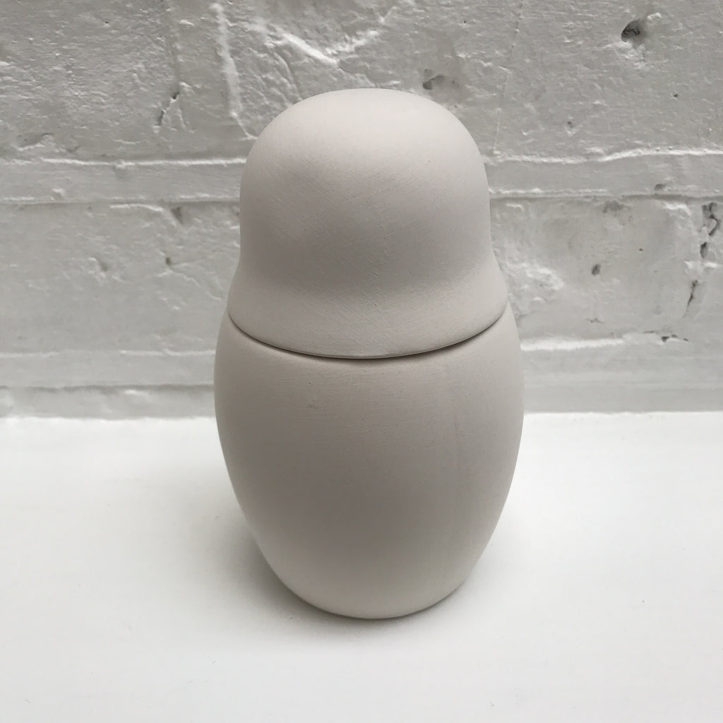 Set of 5 dolls. 14.5 cm tall 9.5 cm wide. Select your paints from the colour chart. Choose up to 7 paints with this product. After painting return your item for professional glazing and firing in our studio.